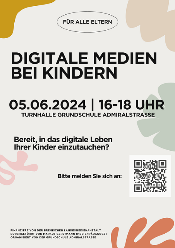 Der Elternabend wird angeboten von Markus Gerstmann, langjähriger Medienpädagoge, und von der Bremischen Landesmedienanstalt finanziert. Bitte kommen Sie alle und melden sich hier an, damit wir besser planen können. Auch unangemeldet sind Sie herzlich willkommen!