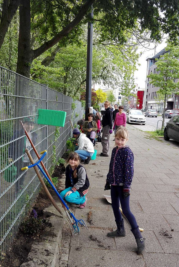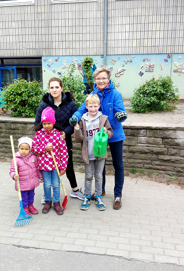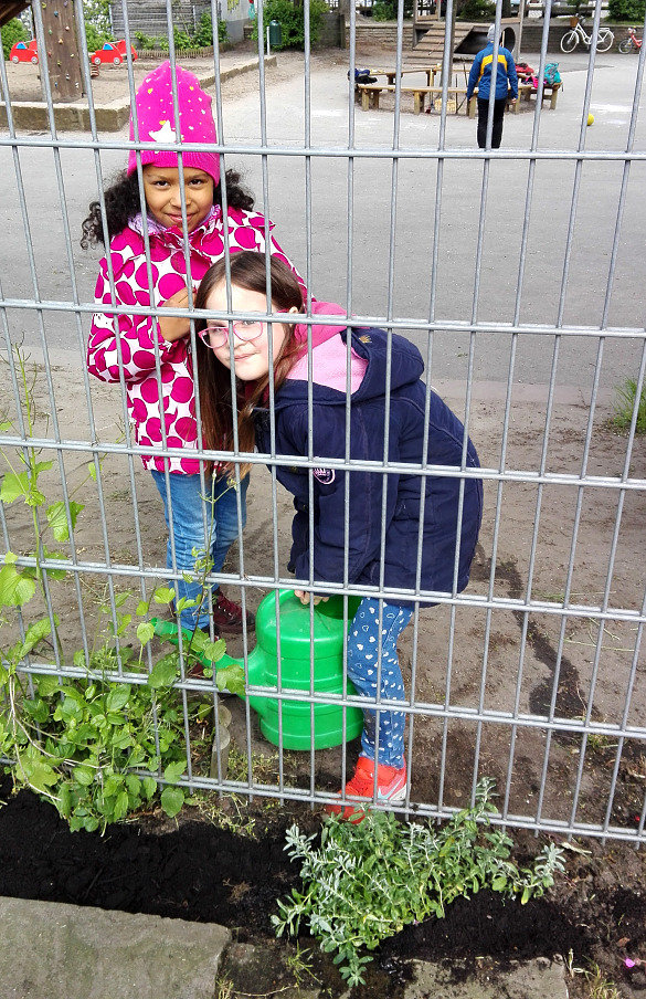 Am Freitag, den 3. Mai 2019 starteten wir um 14.30 Uhr mit unserer Pflanzaktion. Viele fleißige Helfer richteten in Windeseile alle Beete auf dem großen Schulhof her, um sie dann zu bepflanzen. Ein besonderes Augenmerk galt dem Zaun, der mit vielen Kletterpflanzen begrünt wurde. Anschließend konnten sich alle Helfer am reichhaltigen Buffet mit Kaffee, Tee, Saft und Kuchen stärken. In sehr kurzer Zeit haben viele fleißige Hände den Schulhof wieder attraktiver für unsere Kinder gestaltet.
